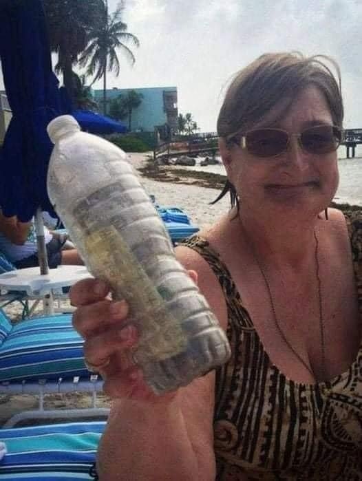 Early one morning in Florida, Judi, one of the owners of a beachfront hotel, was walking along the shore collecting trash. During her walk, she came across an unusual bottle washed up on the beach. Inside the bottle were some sand and two one-dollar bills.