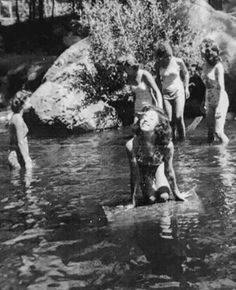 In July 1945, a group of thirteen-year-old girls went camping in America. They were swimming in a river in Ruidoso, New Mexico. The girl in front of the photo is named Barbara Kent. What the girls didn’t know was that nearby, the Manhattan Project was testing a nuclear bomb.