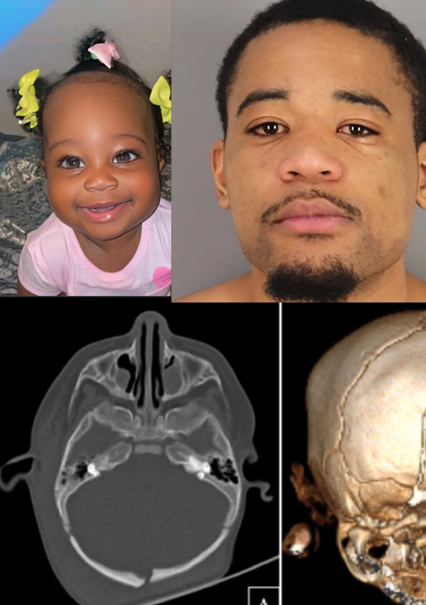 A CT scan done at the hospital showed that the baby had suffered a fractured skull, brain hemorrhage, bleeding in her left eye, and bruises on her upper back.