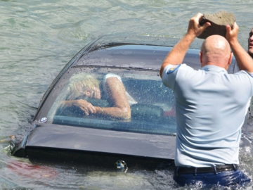 How can I save someone trapped in a car that’s going underwater?