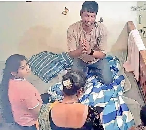 In the video, Lokesh is shown folding his hands, touching his wife’s feet, and repeatedly begging, while the assault allegedly continues. Viewers say his behavior does not indicate weakness, but rather fear of legal consequences.
