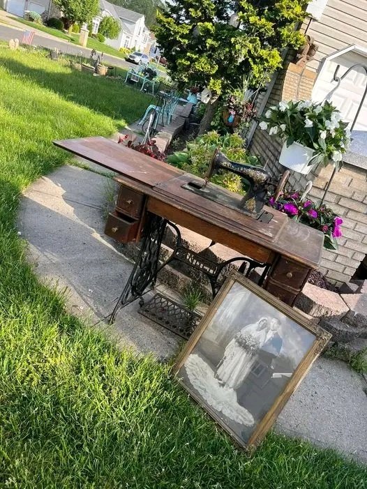 As I walked back toward my car, my curiosity got the better of me. I pointed to the framed photograph sitting by the curb and asked him about the couple in the picture. He told me they were his grandparents. Hearing that made the moment feel even more special. I then asked if the sewing machine had also been his grandmother’s, and he confirmed that it was.