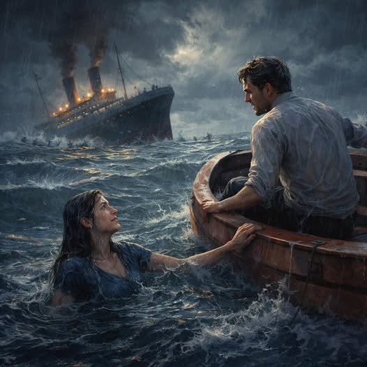 “A ship is sinking. Somehow, a husband and wife survive and make it to a lifeboat.