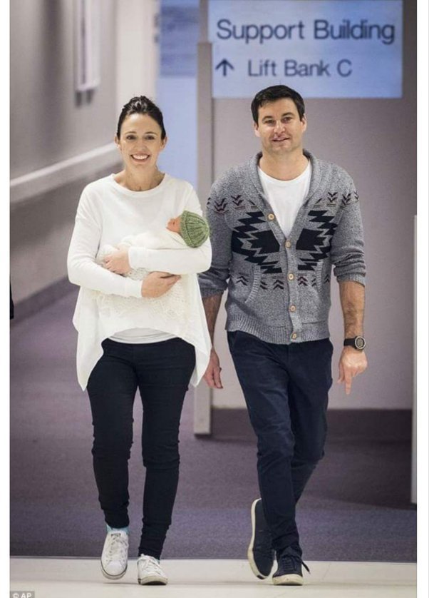Recently she gave birth to her first baby and became the second woman(only after benazir bhutto) to give birth while being the head of the government. The person in the picture is not her husband, but partner.